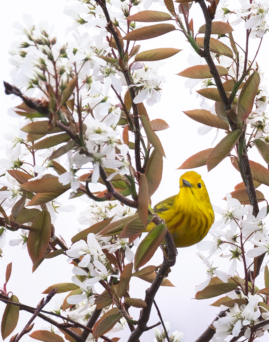 A yellow warbler takes a breather in a flowering tree on a spring day in Prince Edward Island. Prints Available.