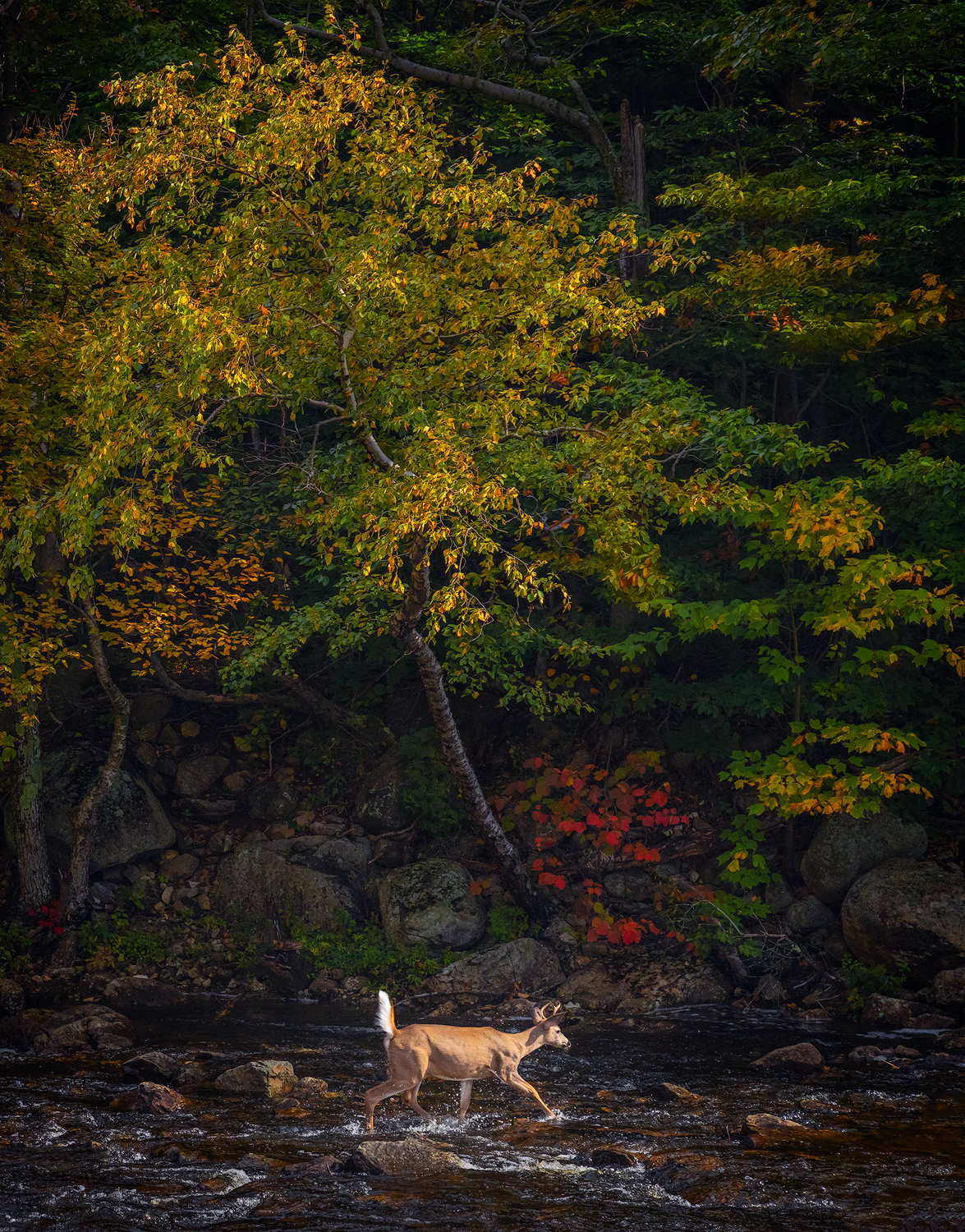 A young buck deftly crosses a river in the Adirondacks. Seeing wildlife while out for a hike is always a treat, especially in such a beautiful setting. Prints Available.