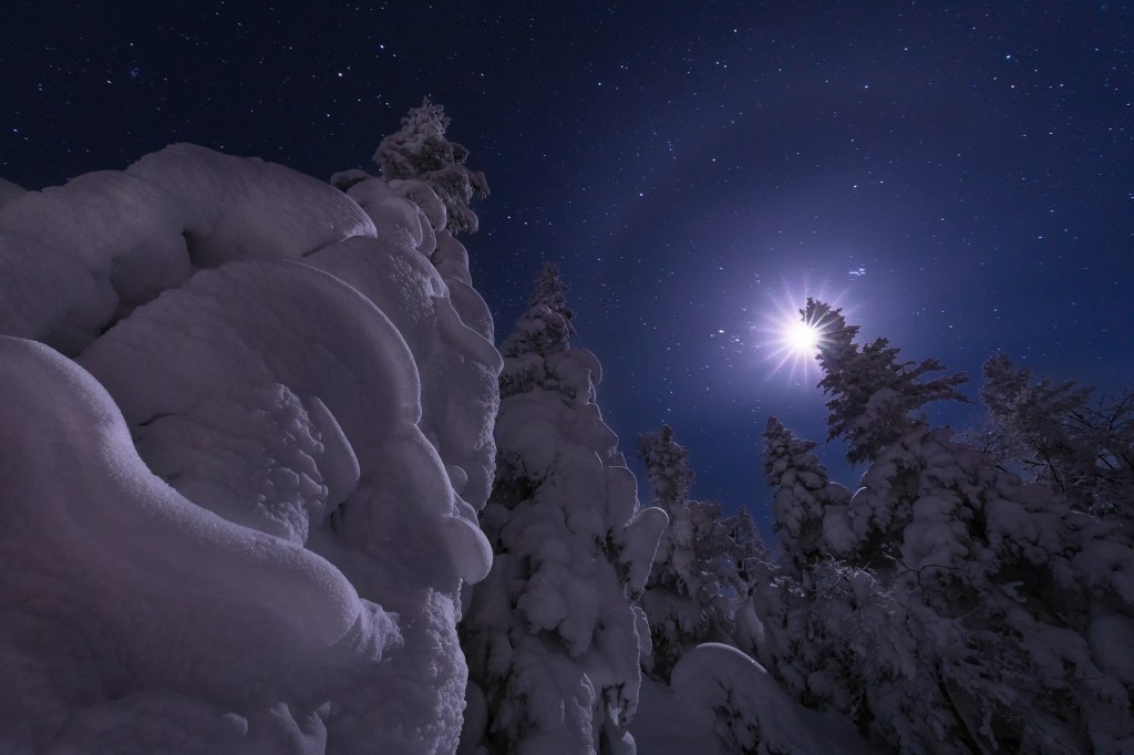If at the aforementioned trail junction you’re feeling up for some added distance and elevation, rather than taking the side trail up to Wright continue on 0.9 miles to the exposed alpine summit of Algonquin. Views from the rocky tundra are unfettered and include Colden with its many slides and Trap Dike. Due to its entirely exposed nature, Algonquin is a peak best saved for a calm day. Spend some time exploring the summit before sunset (while being careful not to trample the rare and delicate alpine plants that make the summit home) and marvel at how the raking winds have sculpted the snow into fanciful shapes. As the second highest peak in the Adirondacks, Algonquin has a “top of the world” feel to it, and lingering on the summit and watching the sunset sky transition from orange to magenta to the deepest blue-black imaginable is an experience that could never be forgotten.