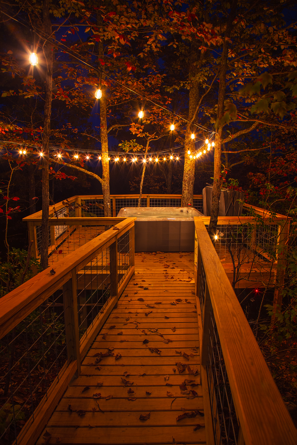 An inviting hot tub in the trees at Treehouse Grove at Norton Creek was the perfect spot to unwind on a crisp fall night after an exciting day of exploration in the Smoky Mountains of Tennessee.
