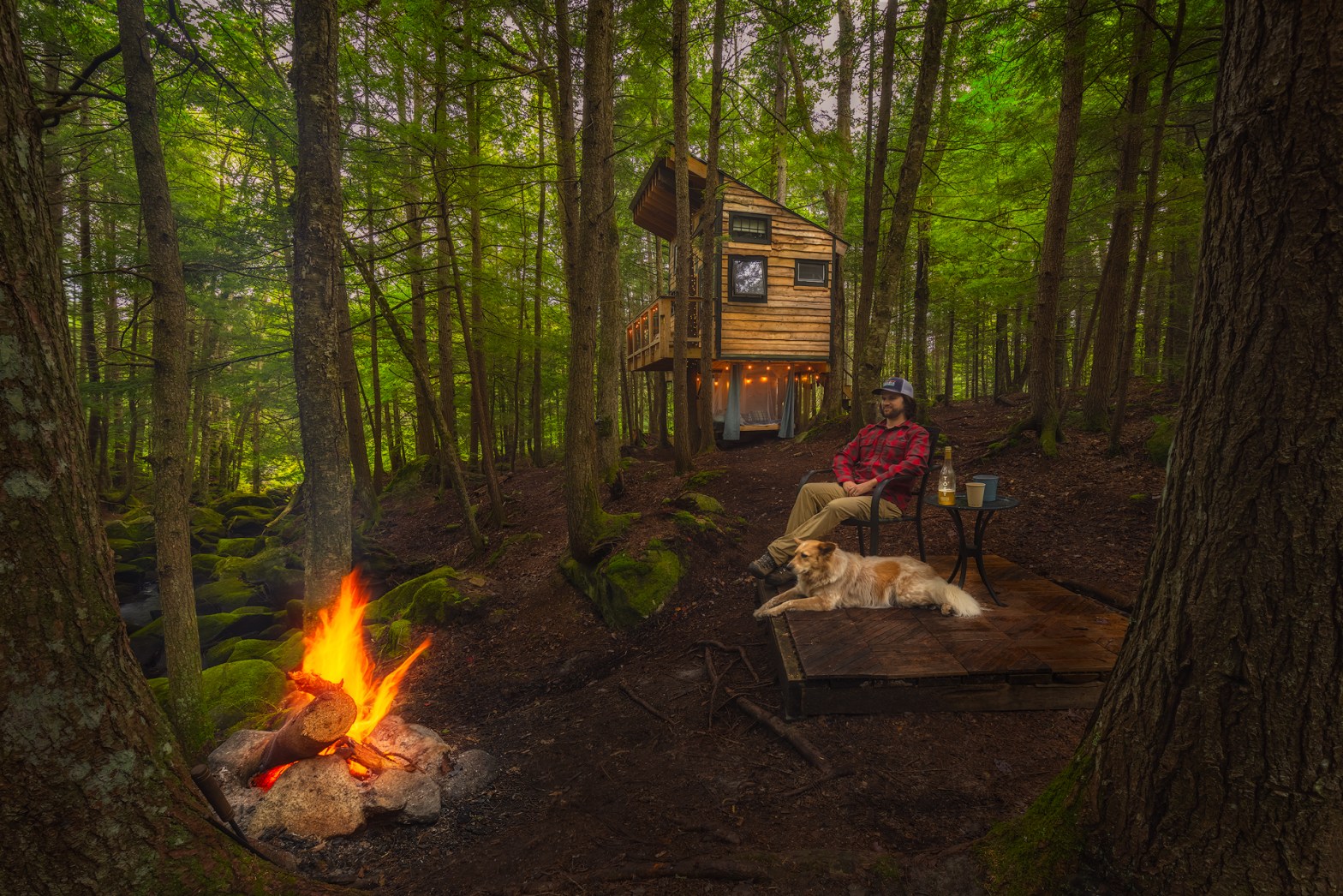 As if this treehouse in Vermont’s Northeast Kingdom wasn’t enchanting enough on its own, the fire ring down by the verdant creek took the experience to another level.
