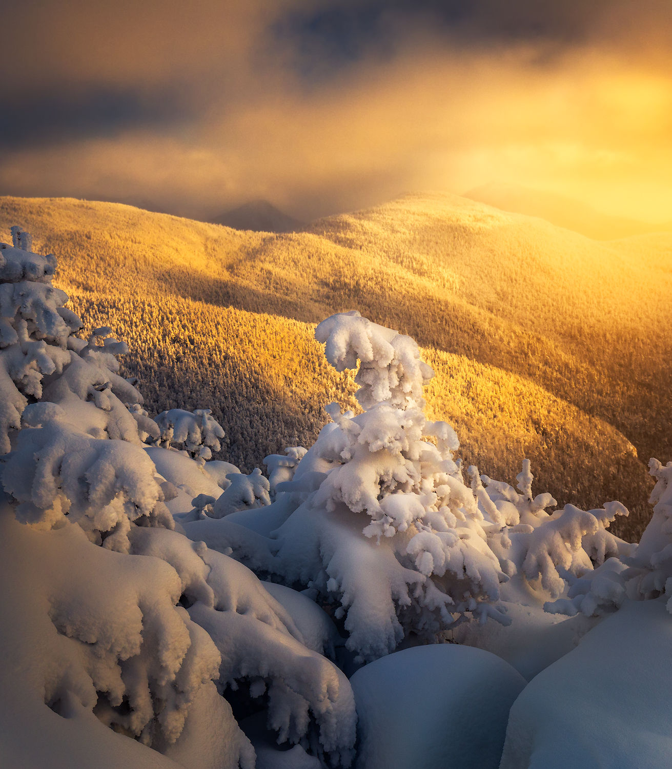 Beautiful sunset light makes the snowy winter landscape come alive. The solitude and dramatic beauty of winter makes it my favorite time of year to explore the mountains. Adirondack Mountains, New York. Prints Available.
